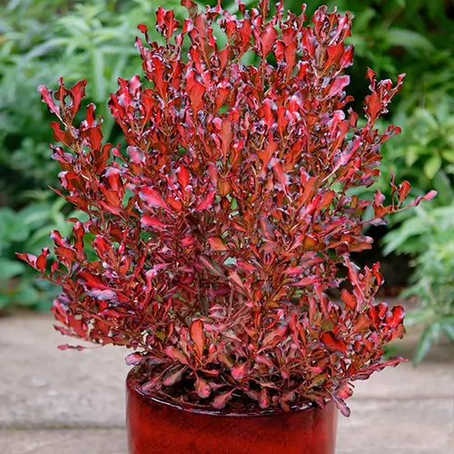- Arbusto compacto, ideal para borduras, canteros y macetas.